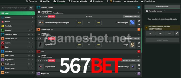 O 567Bet oferece uma grande seleção de opções de apostas em e-sports com probabilidades competitivas